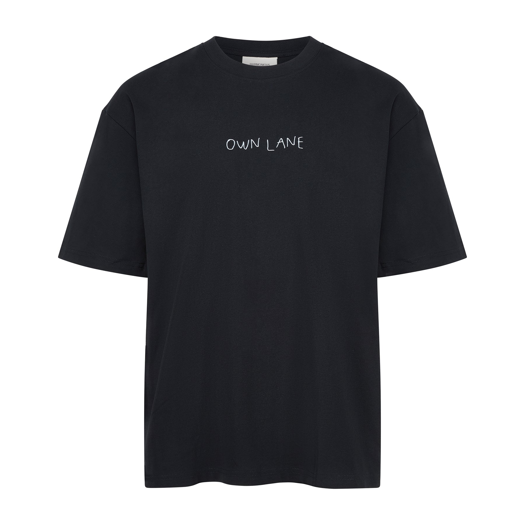 Classic fit tee in black with our “Own Lane” print at the chest and HARMONIOUS SOCIETY back graphic. Clean crew neck, drop shoulder and straight hem. Built for people who move with intention.